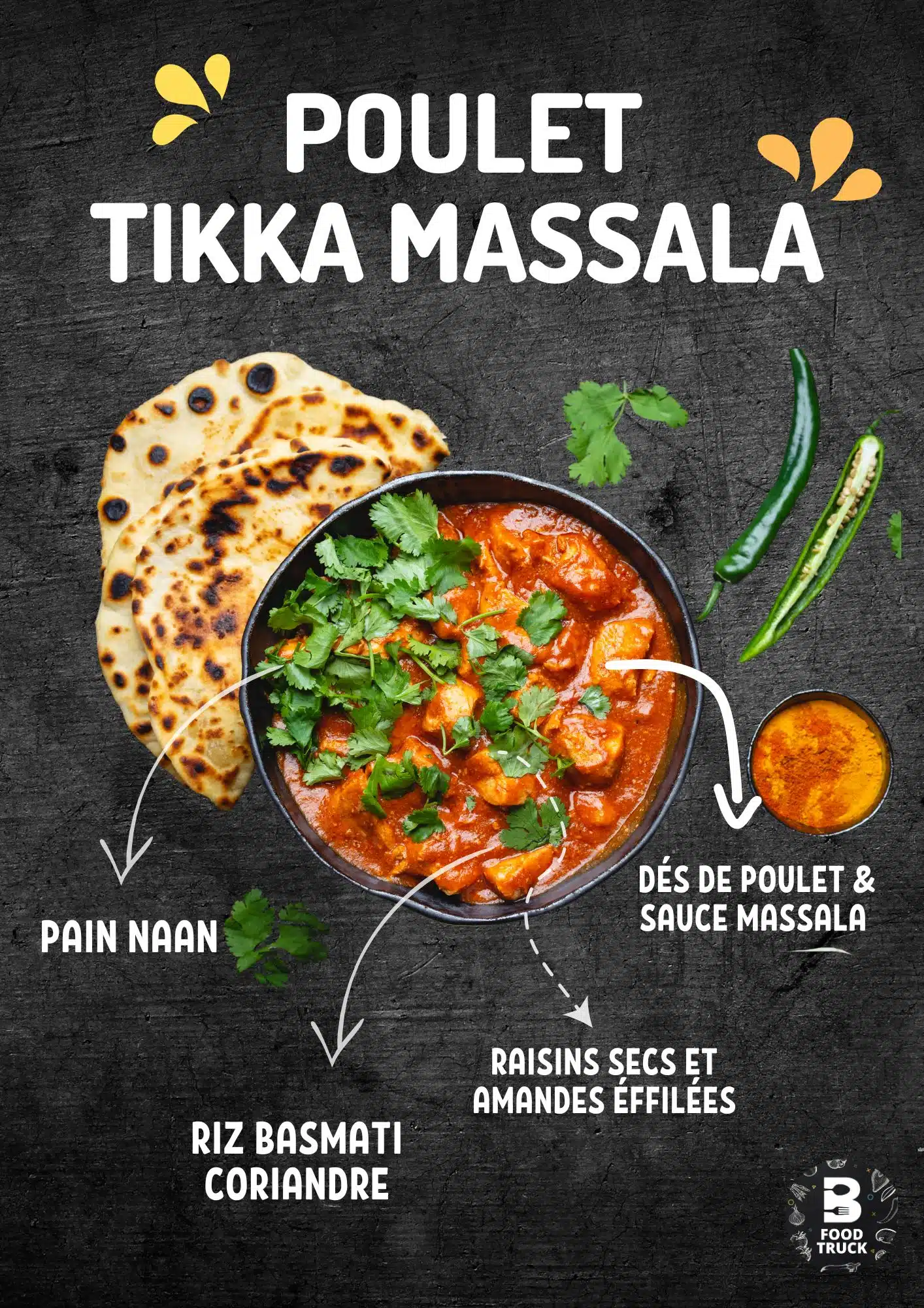 Voyagez à l’Est avec notre cuisine asiatique qui éveille les sens. Du Tikka Massala envoûtant au poulet curry thaï réconfortant, chaque plat est une célébration de saveurs riches et audacieuses.